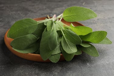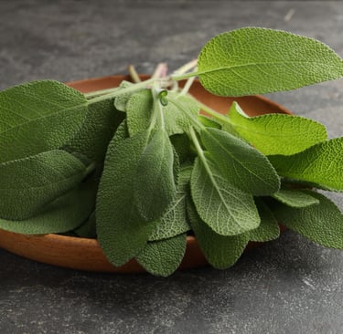 De sabor intenso e levemente picante, a sálvia é ideal para carnes, massas e recheios. O nome "sálvia" vem do latim salvare, que significa "curar" ou "salvar".