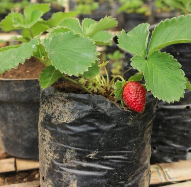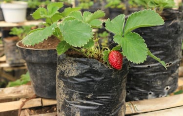 A produção ideal de morangos grandes e saborosos acontece quando a temperatura do solo se mantém mais fresca. Para conseguir isto, utiliza-se o sistema do “mulch” que significa colocar uma camada protetora do solo para preservar a umidade da terra, controlar ervas daninhas e manter a fruta limpa.