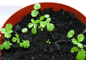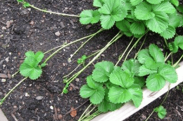 As mudas que são compradas em sacolas plásticas, vasos ou bandejas devem ser plantadas com o torrão. Deve-se tomar muito cuidado para não quebrar o sistema radicular da muda e prejudicar o crescimento da planta. Deve-se também, retirar o saquinho da muda. Por ser uma planta pequena e de raízes relativamente pouco profundas, o morangueiro pode ser facilmente cultivado em vasos e jardineiras.